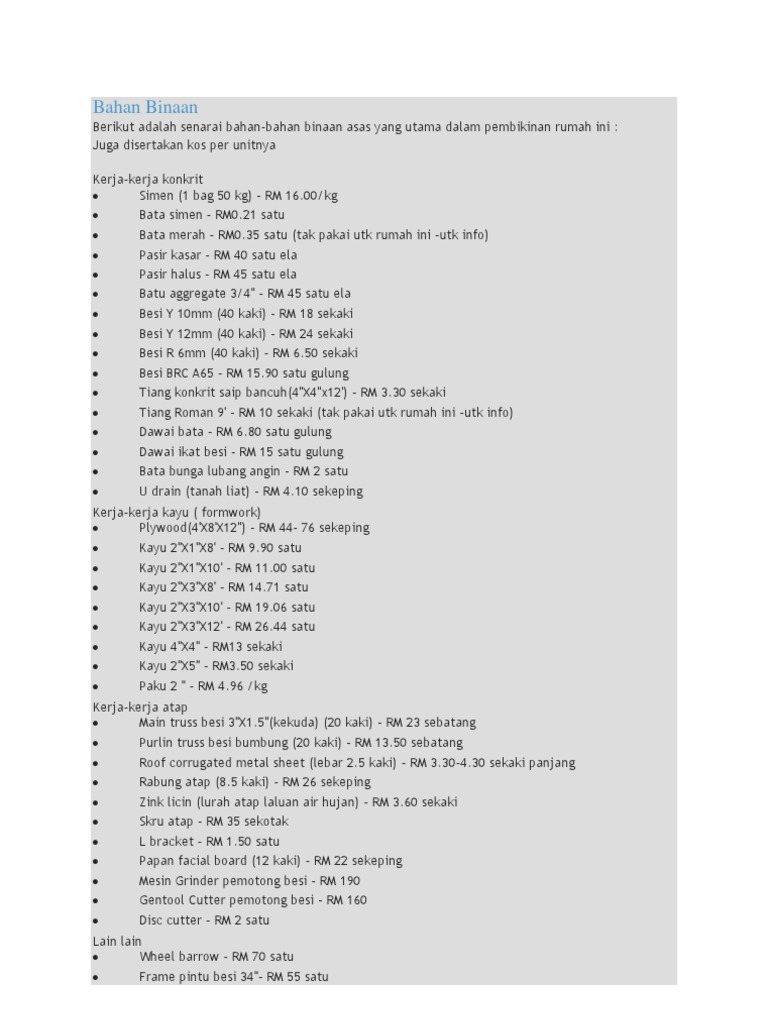 Cara Pengiraan Bahan Binaan / Video ini dapat ditonton dengan sari kata dalam bahasa anda sendiri.. 3 bilik tidur 10'x10' ruang tamu 20' x 20' ruangan dapur 12x21' bilik mandi 8' persegi bahan binaan bata blok 150pcs x 15. Tentukan jenis bangunan dan pilih bahan yang sesuai. 1.1 cara menggunakan perkhidmatan itu apabila mengira kos bahan binaan, ambil perhatian bahawa kos pasir dan runtuhan dalam kalkulator ditunjukkan setiap 1 tan. Kos bahan binaan kos bahan binaan adalah antara komponen kos utama dalam pembinaan sesuatu projek. Tutorial bina rumah di malaysia.