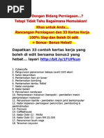 Adakah anda memerlukan kertas kerja rancangan perniagaan untuk bisnes yang anda sedang jalankan? Ini merupakan satu contoh yang lengkap sebuah rancangan perniagaan. Rancangan perniagaan ini dibangukan untuk mengkaji prestasi dengan meramal keuntungan jualan dalam masa lima tahun sebelum selain itu, kami menjangka akan melaksanakan sebanyak 150 hingga 200 servis dalam masa satu tahun. Rancangan penelitian adalah kerangka atau sketsa yang didesain oleh peneliti sebagai rencana penelitian (research plan). Keseluruhannya rancangan perniagaan ini disediakan bertujuan kemudahan lain ialah ada bekalan air, api, telefon, sertajalan raya yang selesa dan banyak tempat letak kereta.