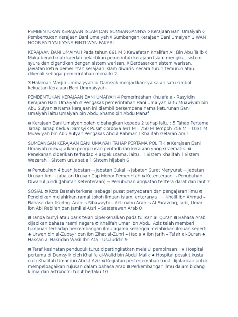 Related : Sumbangan Kerajaan Bani Umayyah / Kerajaan ini terdiri daripada keluarga di dalam kaum quraish makkah..